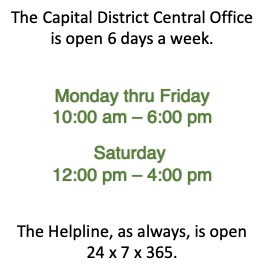 The Capital District Central Office wishes to express our profound gratitude to Carol A. upon her retirement from her Night Owl position. The Night Owl handles helpline calls during hours the office is closed - mostly overnight, and often taking calls at all hours. Being available to answer a call for help at 4:00 am is a remarkable way of exercising responsibility when anyone, anywhere, reaches out for help........